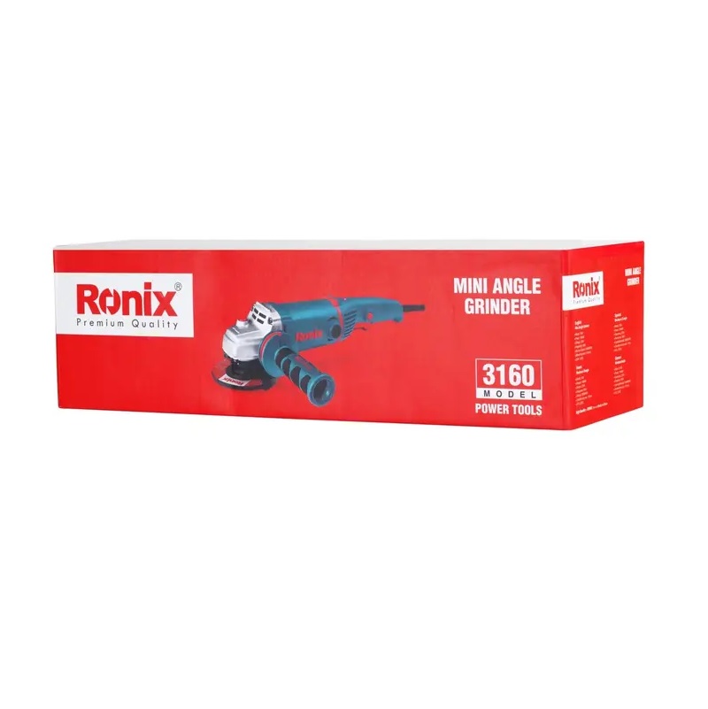 دستگاه مینی فرز فوق یکی از محصولات تولیدی شرکت «رونیکس» (Ronix) است. این شرکت تجربهی بالایی در زمینهی تولید انواع ابزارهای دستی و برقی دارد و این دستگاه مینی فرز را با نام «3160» به بازار عرضه کرده است. این مینی فرز سرعت گردشی برابر 9000 دور بر دقیقه دارد و میتوانید با کمک آن به برش و ساب فلز و حتی سنگ بپردازید. این محصول توانی برابر 1400 وات دارد و از قابلیت کنترل سرعت سود میبرد. این مزیت در بسیاری از دستگاههای مینی فرز وجود ندارد و همین موضوع موجب محبوبیت بیشتر این دستگاه شده است. شرکت رونیکس به همراه این فرز یک دستهی کمکی عرضه کرده است که با کمک آن میتوانید با تسلط بیشتری کار کنید. از دیگر مزیتهای این دستگاه میتوان به قفل سوییچ آن اشاره کرد که با وجود آن دیگر به نگه داشتن شستی دستگاه برای برش یا ساب نیاز ندارید. قطر صفحهی مناسب برای این مینی فرز 115 میلیمتر بوده و اندازه سوراخ مرکزی آن 14 میلیمتر طراحی شده است. کابل برق این مینی فرز طولی 3 متری دارد.