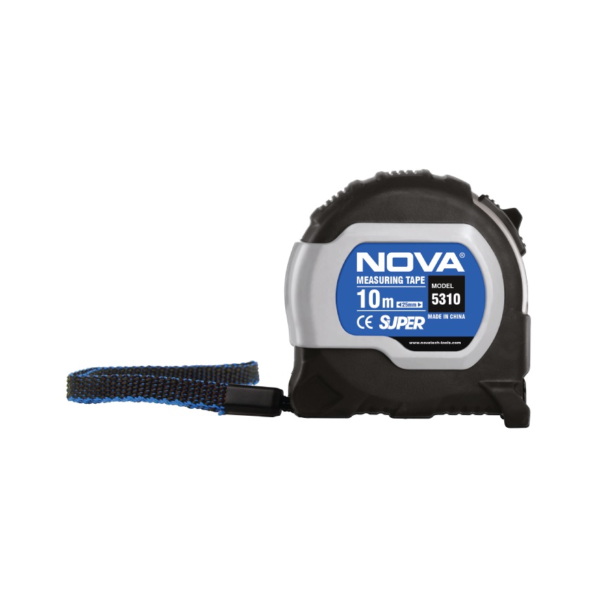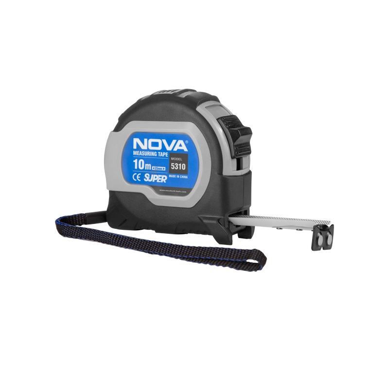 متر 10 متری سری سوپر نووا مدل 5310 ، ابزاری دقیق و مقاوم برای اندازهگیری در پروژههای حرفهای و خانگی است. این متر با تیغه سفید رنگ و روکش مات، وضوح بالایی را در خواندن اعداد فراهم میکند و مقیاس متریک آن با دقت کلاس II چاپ شده است. قلاب آهنربایی با طراحی ویژه و سه پرچ محکم، علاوه بر استحکام بالا، امکان اندازهگیری دقیق را به کاربر میدهد. بدنه این متر از متریال باکیفیت ABS ساخته شده و با طراحی ارگونومیک خود، خوشدست و مقاوم در برابر ضربه است. روکش لاستیکی ضد ضربه، کل بدنه را پوشش داده و از آن در برابر آسیبهای احتمالی محافظت میکند.سیستم قفل منحصربهفرد این محصول، با کمترین فشار به تیغه عمل کرده و باعث افزایش طول عمر آن میشود. فنر بسیار قوی، جمعشدن روان تیغه را تضمین میکند و انتهای تقویتشده تیغه، مقاومت آن را در استفادههای مکرر افزایش میدهد. این متر مجهز به بند پارچهای مقاوم، گیره فلزی کمری و ضربهگیر قلاب است تا حمل و استفاده از آن در محیطهای کاری مختلف آسان باشد. نووا مدل 5310 انتخابی ایدهآل برای کسانی است که به دنبال متر دقیق، بادوام و خوشساخت هستند.