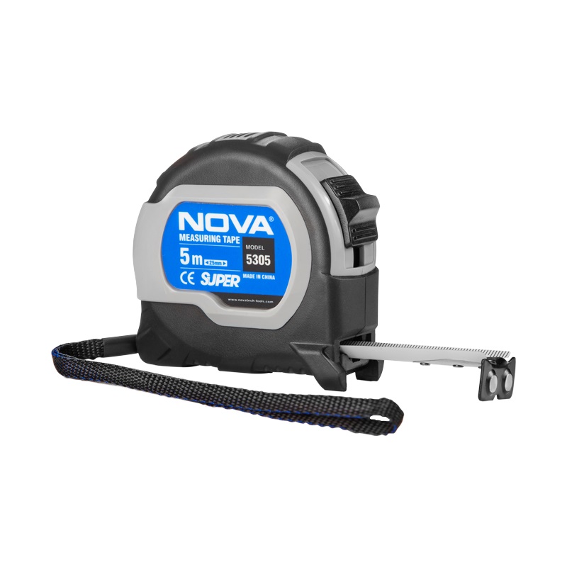 متر 5 متری سری سوپر نووا مدل 5305 ، ابزاری دقیق و مقاوم برای اندازهگیری در پروژههای حرفهای و خانگی است. این متر با تیغه سفید رنگ و روکش مات، وضوح بالایی را در خواندن اعداد فراهم میکند و مقیاس متریک آن با دقت کلاس II چاپ شده است. قلاب آهنربایی با طراحی ویژه و سه پرچ محکم، علاوه بر استحکام بالا، امکان اندازهگیری دقیق را به کاربر میدهد. بدنه این متر از متریال باکیفیت ABS ساخته شده و با طراحی ارگونومیک خود، خوشدست و مقاوم در برابر ضربه است. روکش لاستیکی ضد ضربه، کل بدنه را پوشش داده و از آن در برابر آسیبهای احتمالی محافظت میکند.سیستم قفل منحصربهفرد این محصول، با کمترین فشار به تیغه عمل کرده و باعث افزایش طول عمر آن میشود. فنر بسیار قوی، جمعشدن روان تیغه را تضمین میکند و انتهای تقویتشده تیغه، مقاومت آن را در استفادههای مکرر افزایش میدهد. این متر مجهز به بند پارچهای مقاوم، گیره فلزی کمری و ضربهگیر قلاب است تا حمل و استفاده از آن در محیطهای کاری مختلف آسان باشد. نووا مدل 5305 انتخابی ایدهآل برای کسانی است که به دنبال متر دقیق، بادوام و خوشساخت هستند.